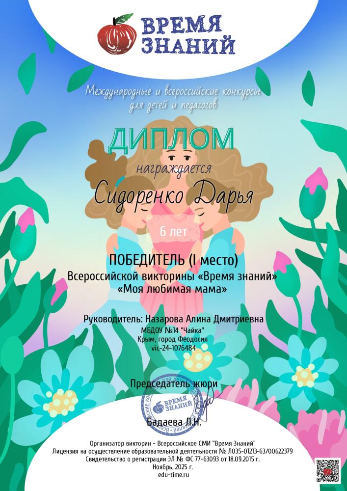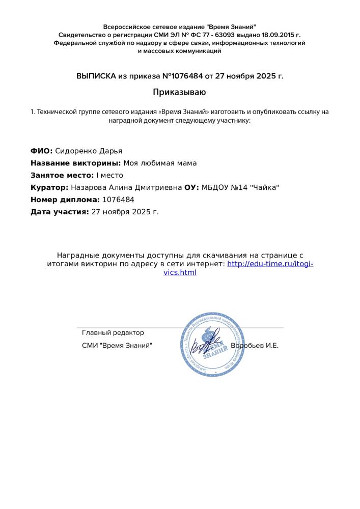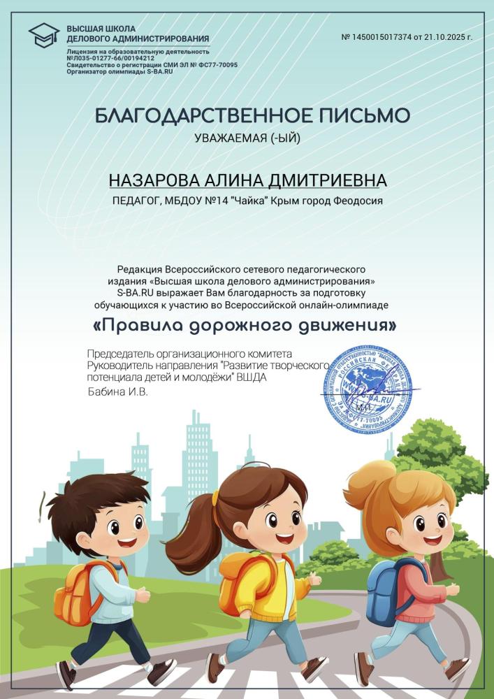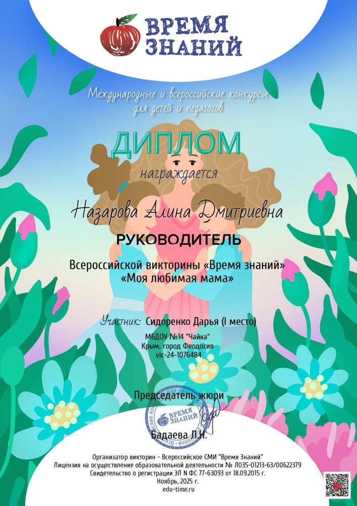 | Фамилия, имя, отчество | Назарова Алина Дмитриевна |
